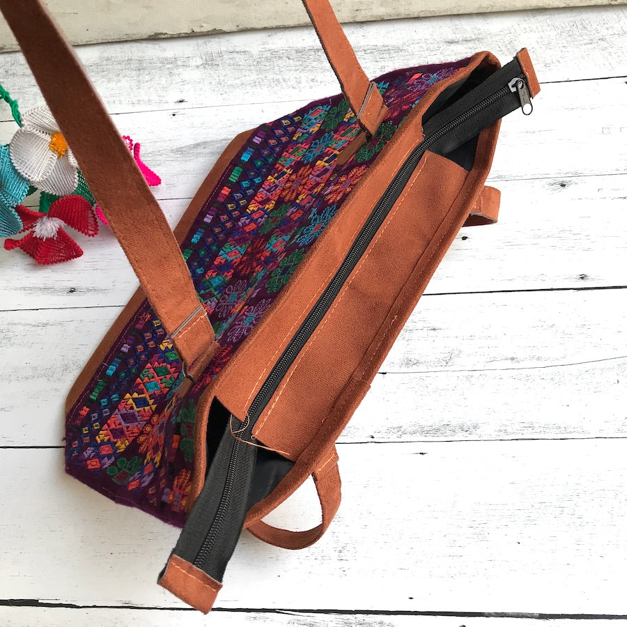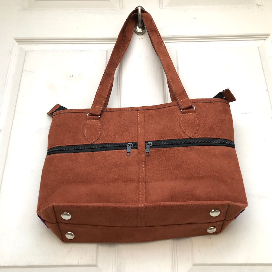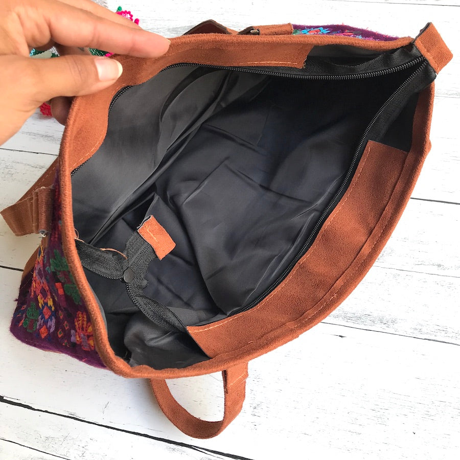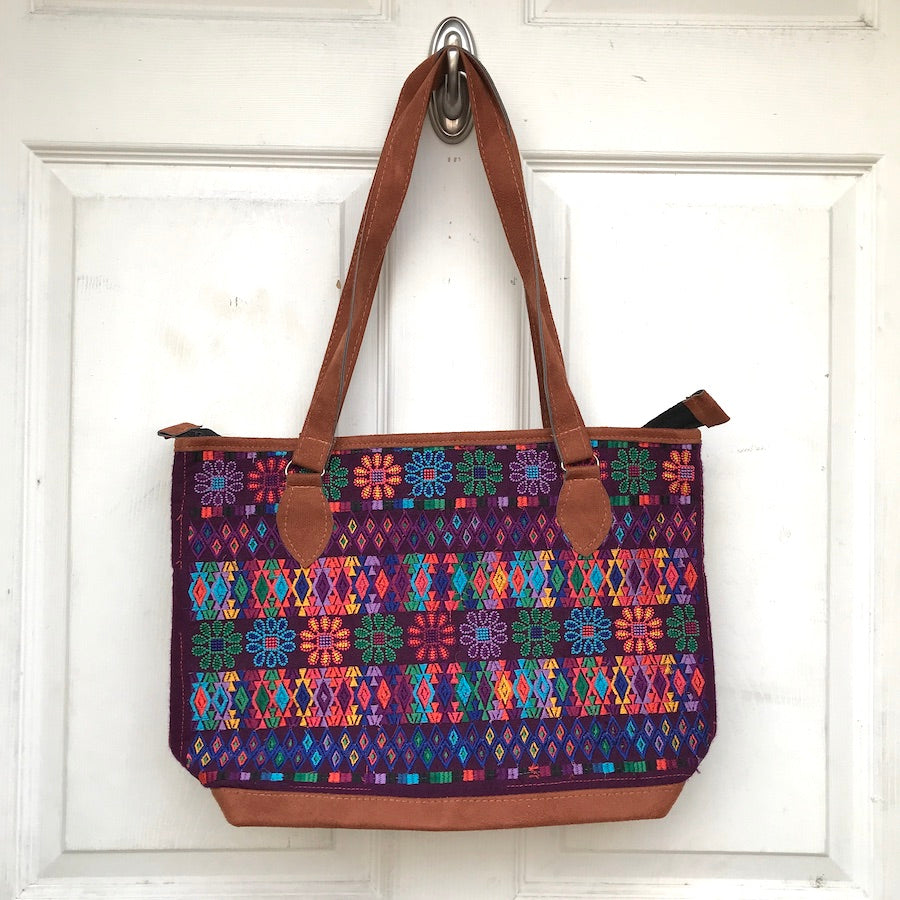 This colorful artisan embroidered handbag made from suede, is fashionable for everyday use, with room for all your stuff.