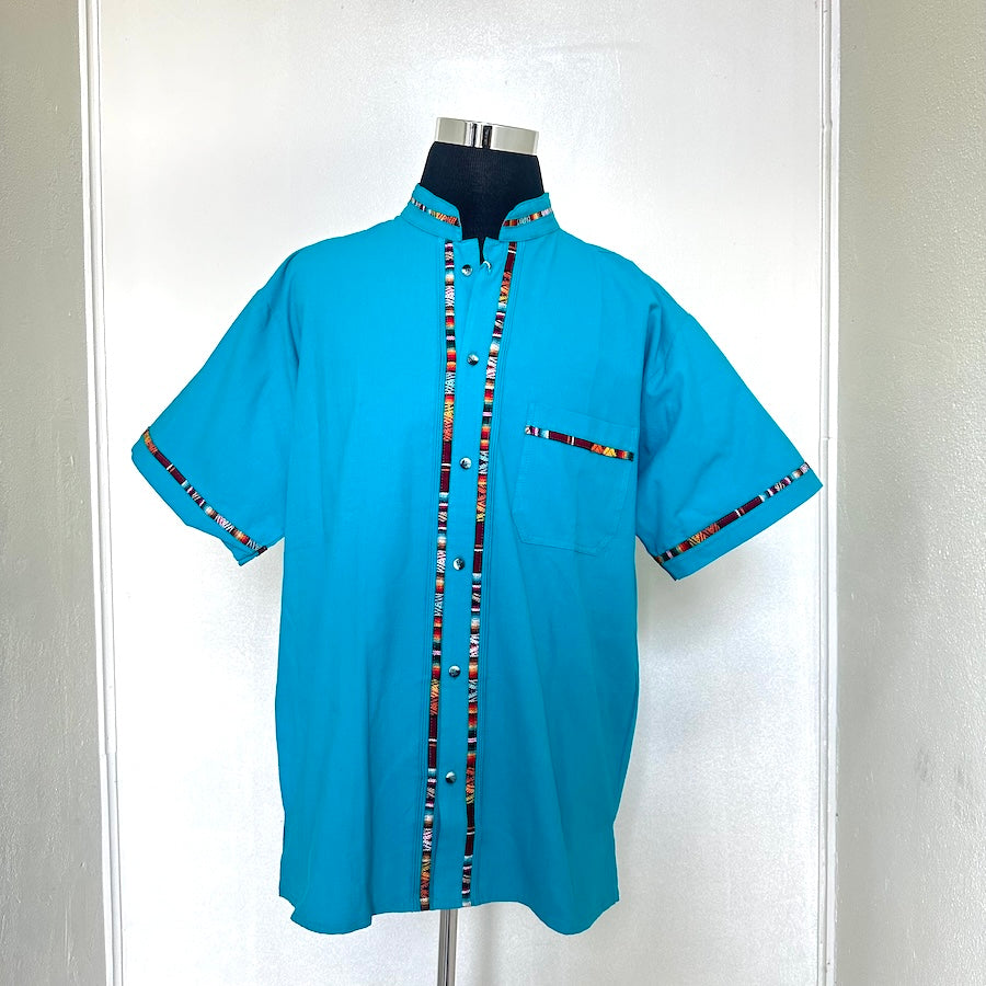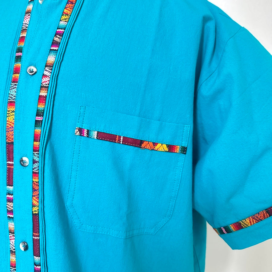 Chiapas Serape Aqua Blue Guayabera (2XL)