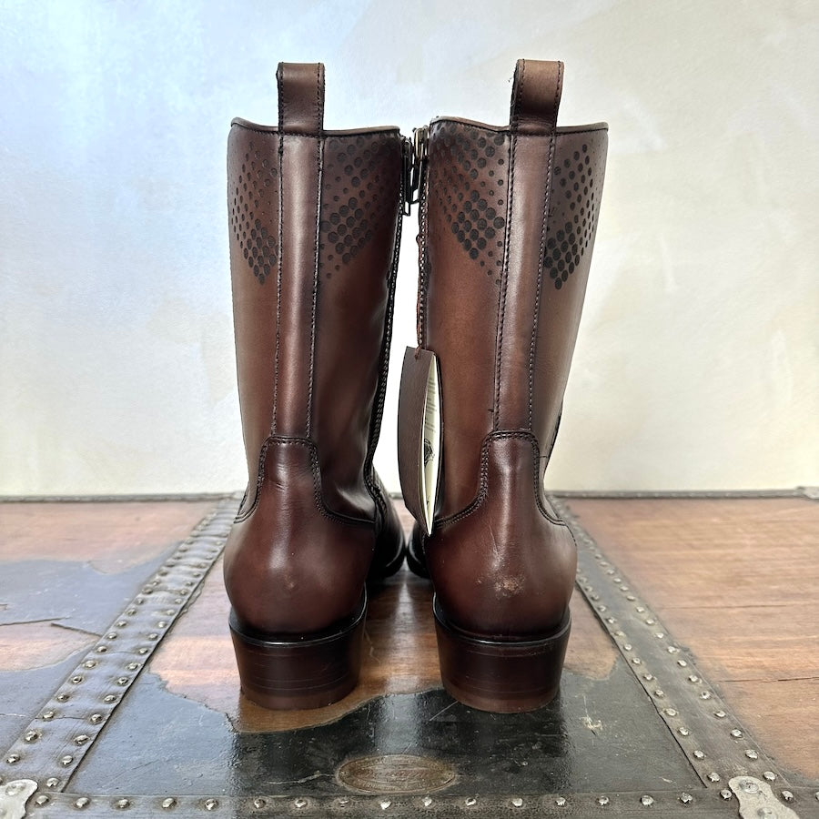 Wipe with a soft and slightly damp cloth (with clean water) to remove dust; let it dry, apply color cream, and then polish with a smooth and dry cloth. It is essential not to shoe shine the boot; otherwise, the natural touch and appearance could be damaged.