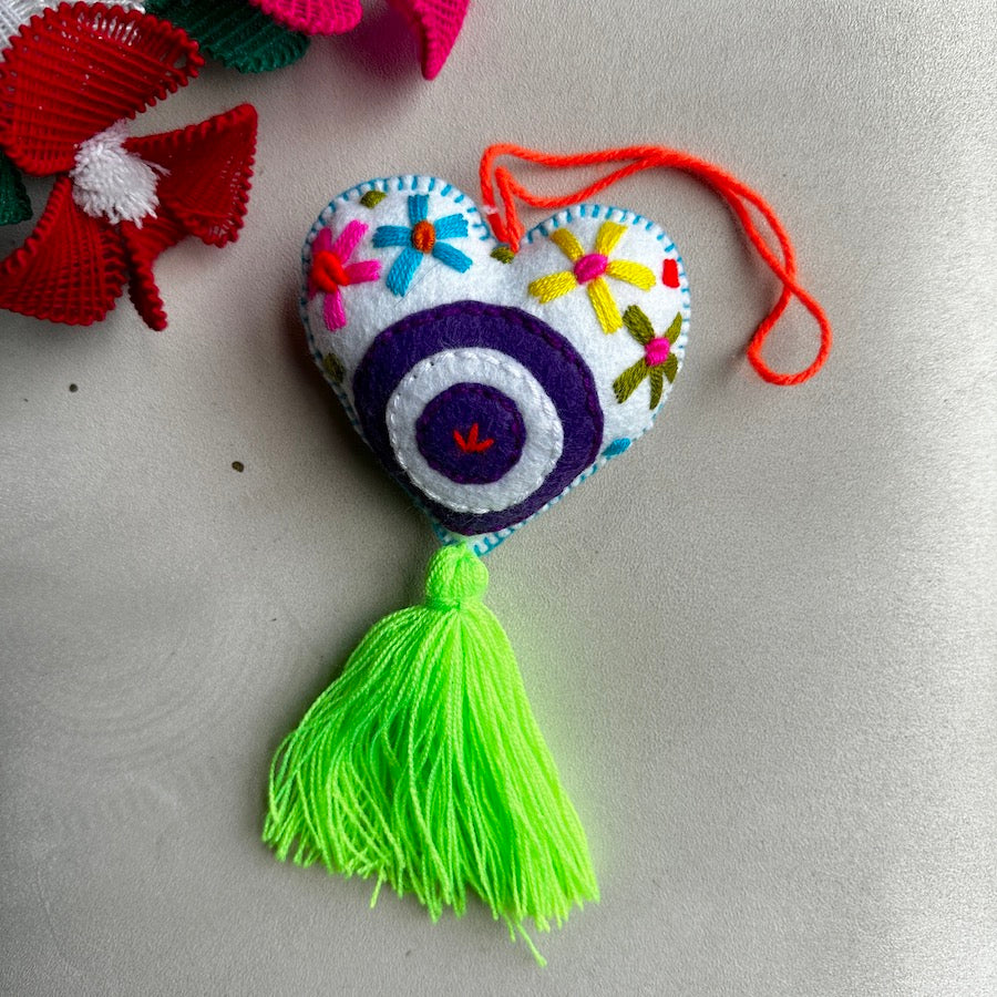 Evil Eye Embroidered Heart Tassel
