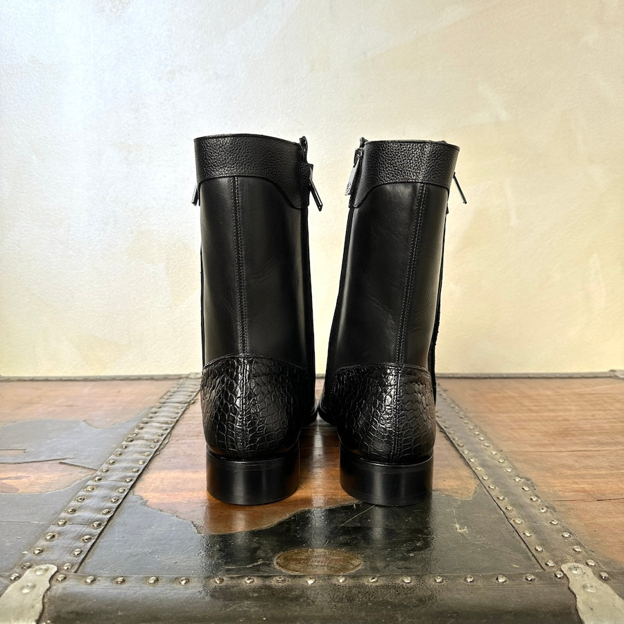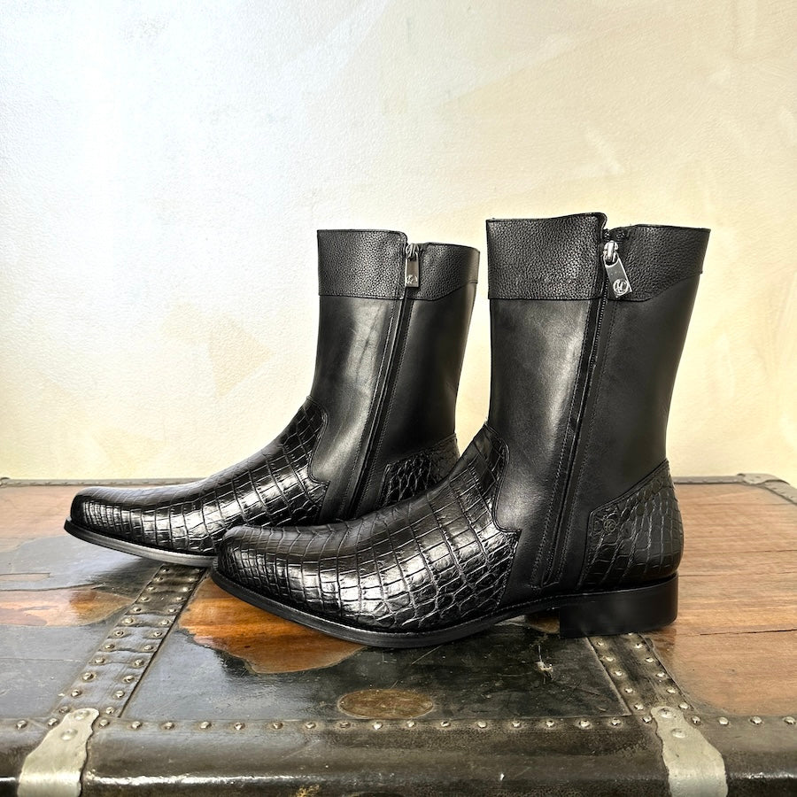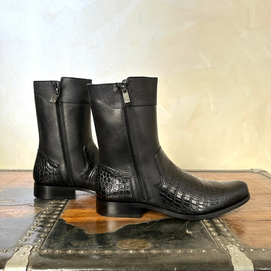 Franco Cuadra Mens Black Crocodile Cowhide Ankle Boot 802NPTS